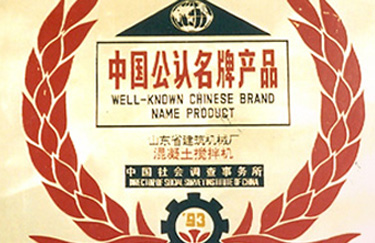 1993建友牌攪拌主機榮獲“中國公認名牌產品”